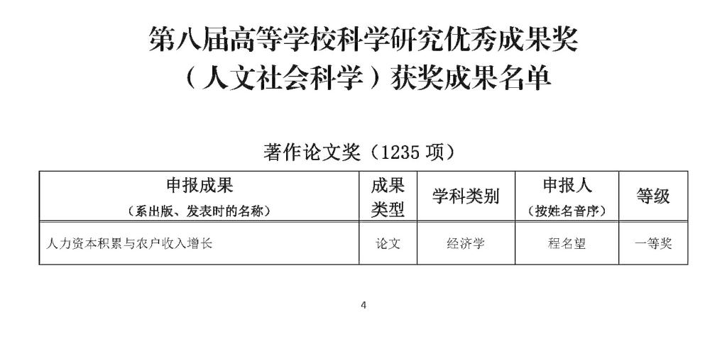 程名望校友的获奖论文发表在经济学中文顶级期刊《经济研究》2016年第1期,是他的“农户贫困及其收入增长和不平等问题”系列研究代表作之一。