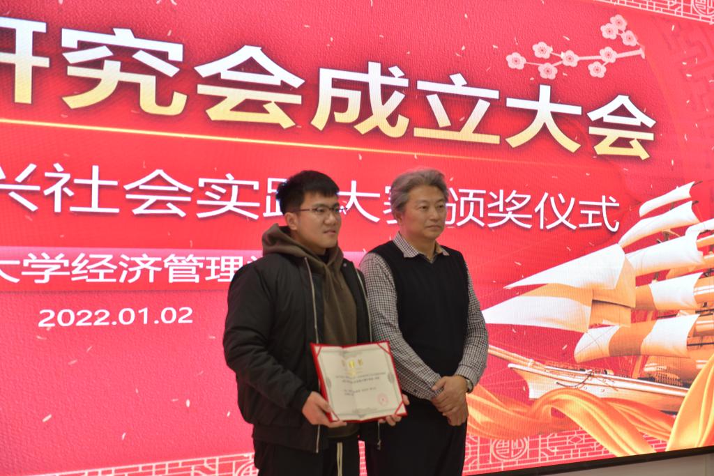 随后进行了第一届乡村振兴社会实践大赛颁奖仪式。据悉,本次大赛共遴选出《故乡与他乡:漂泊中的生活支点——山东省农民工非正规就业调查》等3个一等奖作品、《关于“双减”政策推行落地的调查报告》等3个二等奖作品以及《宅基地退出对多维减贫效应的影响》3个三等奖作品。到场领导和嘉宾们依次为获奖团队颁奖。