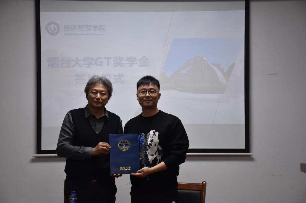,表示学院的发展离不开校友的关心和帮助,韩世勤校友主动回馈母校的善举不仅饱含对学院和老师的深厚感情,也体现他强烈的社会责任感,希望广大校友能够继续关注和支持学院发展。韩世勤说,学院不仅传授专业知识,也教育做人道理,为他提供了一个不断成长和发展的平台,设立“GT奖学金”的初衷是希望获得奖学金的学弟学妹,能够不忘母校、常怀感恩之心。