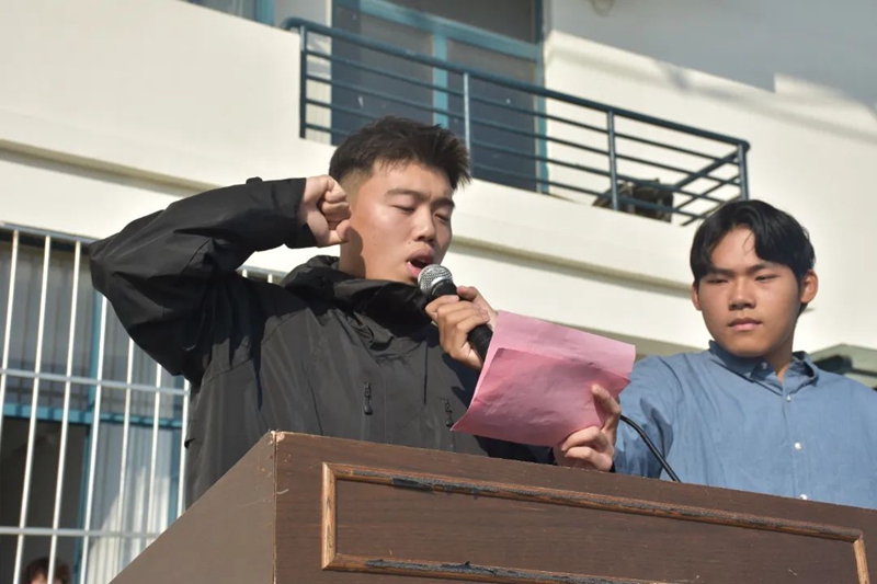 早上八点,伴随着铿锵激昂的乐曲,运动会正式拉开帷幕。英姿飒爽的国旗护卫队迈着铿锵有力的步伐,护送国旗走向升旗台。各班级方阵精神抖擞地进入运动场内,他们迈着矫健的步伐,朝气蓬勃地走过主席台,响亮的口号响彻云霄,闪耀着经管学子们的热血赤城。运动员代表舒晴和裁判员代表王一帆依次宣誓。