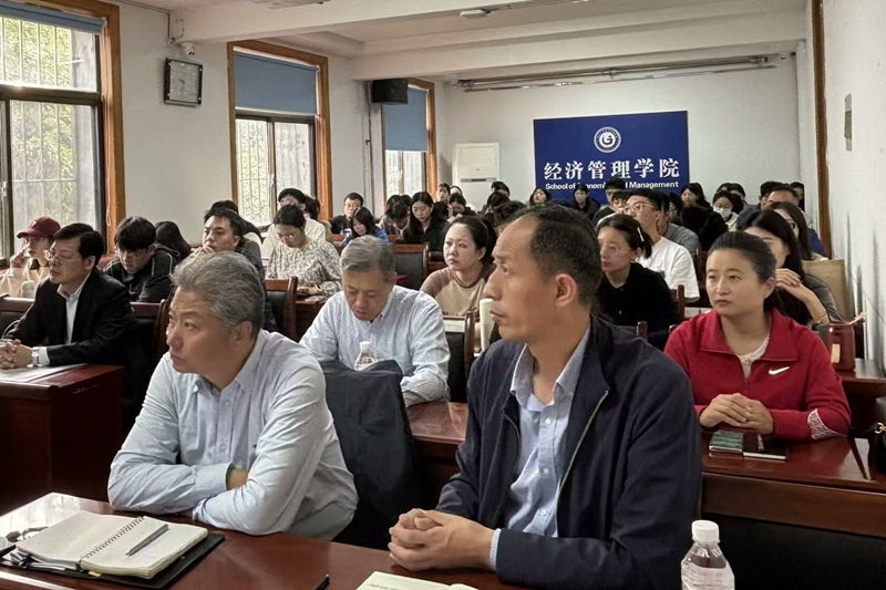 刘瑞教授基于历史演化的角度,围绕宏观经济治理体系的构建与在场师生展开探讨。他为大家详细解读了宏观经济治理体系的概念,并介绍了现代化的宏观经济治理体系,系统梳理了经济体系的演化。刘瑞教授着重介绍了单独体系构建与综合体系构建,从历史演化的角度来帮助大家深刻理解宏观经济治理体系构建。他鼓励同学们要多角度、全方位地发现问题、解决问题,在学术科研的道路上积极探索。
