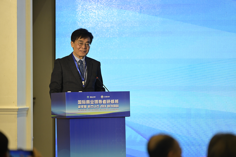 郝曙光在致辞中介绍了烟台大学建校历史、发展成就和国际合作情况。他指出,国际商业领导者研修班的正式启动是烟台大学与仁荷大学深化校际合作新的里程碑,也是双方共同推动中韩高等教育交流的重要举措,希望双方以此为契机持续拓展合作领域,探索联合培养、企业实习、创新创业等多层次、多维度的合作模式,为两校师生搭建更广阔的国际化学习与实践平台,为培养具有全球视野、创新精神和实践能力的高素质国际化人才提供更加优质的资源和环境,共同书写中韩教育合作新篇章。