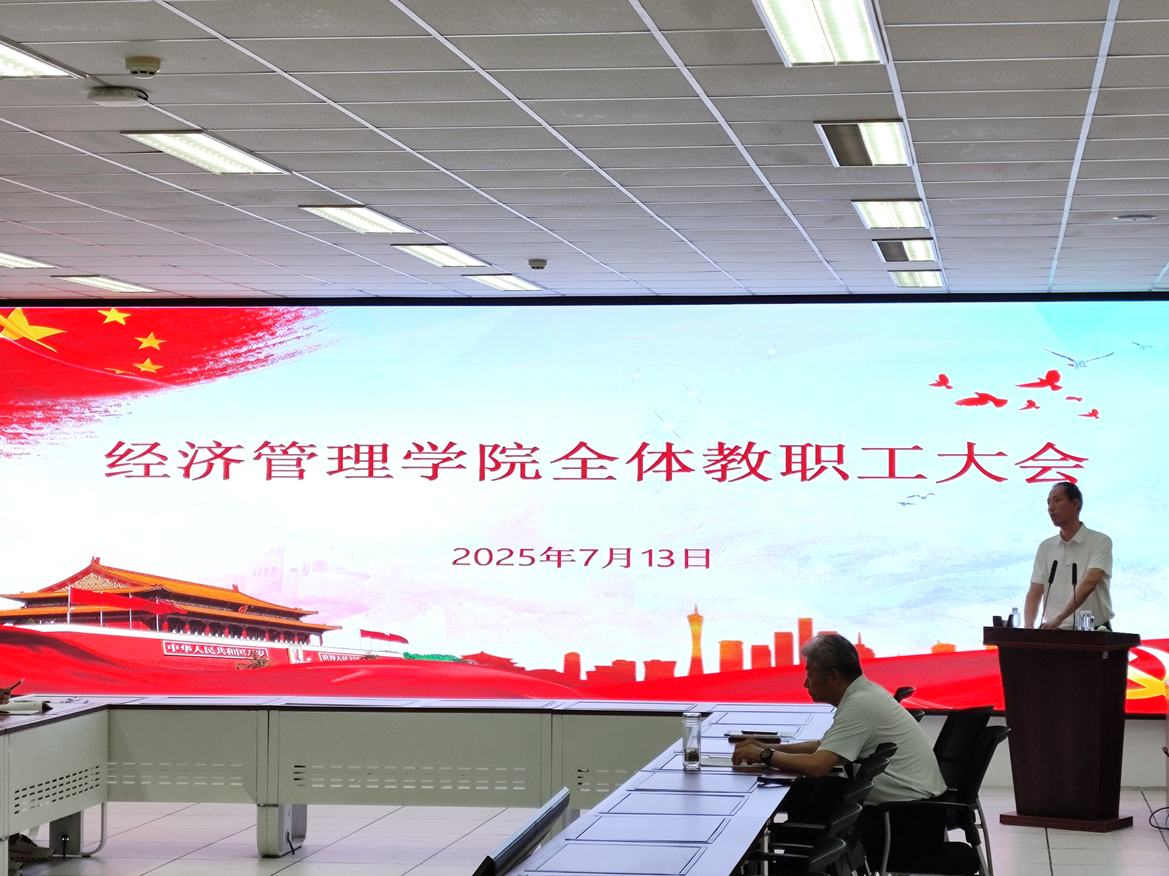 7月13日,经济管理学院在综合楼307召开期末全体教职工大会。学院党总支书记张广毅主持会议,学院领导班子及全体教职工参会。