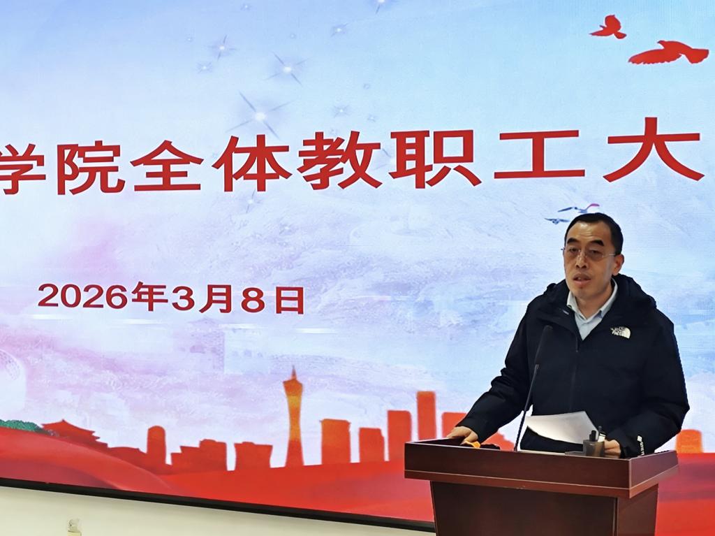 学院党委书记张广毅全面传达了学校五届五次全委(扩大)会暨新学期工作部署会的核心内容,带领全体教职工深入学习党委副书记、校长郝曙光题为《开拓进取 强基筑峰 全力开创高水平大学建设新篇章》的讲话。细致解读了学校2025年改革提质年的丰硕成果、当前发展面临的形势与机遇,以及2026年“强基筑峰年”的总体思路、目标要求和十项重点任务。要求全院教职工深刻把握“基稳才能峰高、峰高更显基实”的辩证思维,以正确政绩观为引领,把思想和行动统一到学校党委的决策部署上来,强化责任担当、凝聚奋进合力。