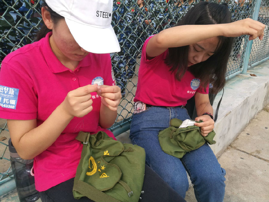 军训导助采用统一着装,军训场上的“小粉红”用为军训带来帮助的同时,更以实际行动用一针一线为新生缝补军训包,更是增补了感动,责任、关怀,这是91成人网