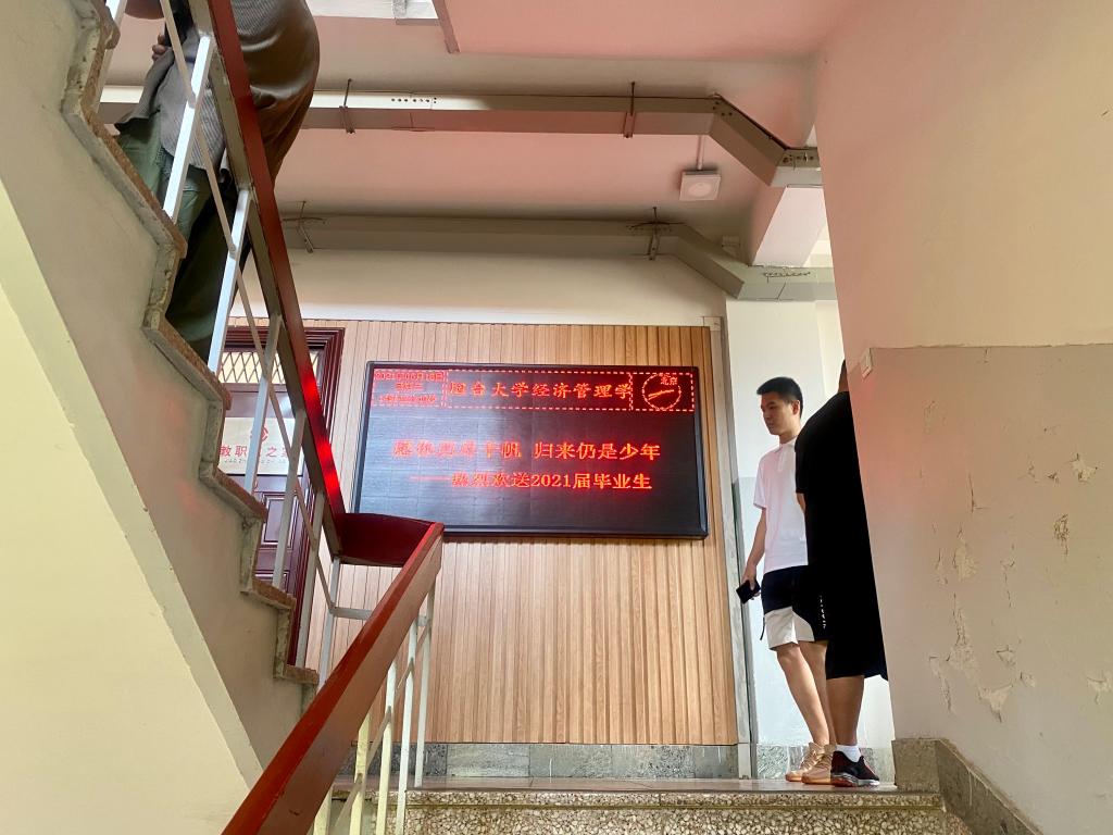 在文科馆三楼的电子显示屏上为今年即将毕业的776名本科生和45名研究生打出温情满满、元气满满的寄语,向即将告别烟园的同学们送去了一份嘱托和祝福,让同学们纷纷进行打卡拍照,“晒图”“发圈”。正值毕业季,91成人网