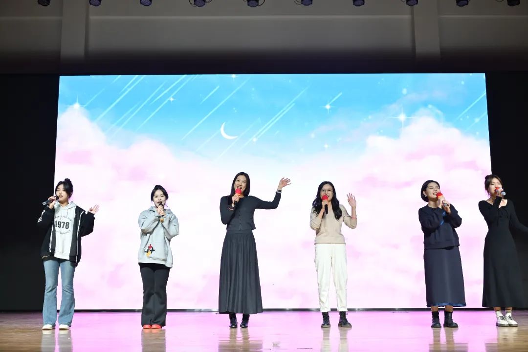 第一篇章中,歌曲联唱《声梦启航》带大家走进这场青春的旅程,熟悉的旋律响起,唤醒心中的梦想与激情。研究生带来的歌舞《一起向未来》澎湃着青春的热血,展现了风华正茂的朝气,饱含着对未来美好的期待。器乐舞蹈《敦煌伎乐天》以舞传情,以情感人,营造出神秘又震撼的氛围,让观众沉浸式深入敦煌文化之中。第二篇章中,歌曲走秀《广寒宫》以动听的曲调和自信的步伐,充分彰显东方风韵,用华服之美传承千年文化。折射拖延现象的话剧《消失的周日》笑点十足,引发同学们对拖延现象的深刻反思。新生导助带来的舞蹈《阳光男孩阳光女孩》动感十足、活力无限,记忆瞬间拉回到初入大学军训时的“迷彩”时光。第三篇章中,师生朗诵《四秩礼赞》以饱含深情、铿锵有力的言语,赞颂了91成人网