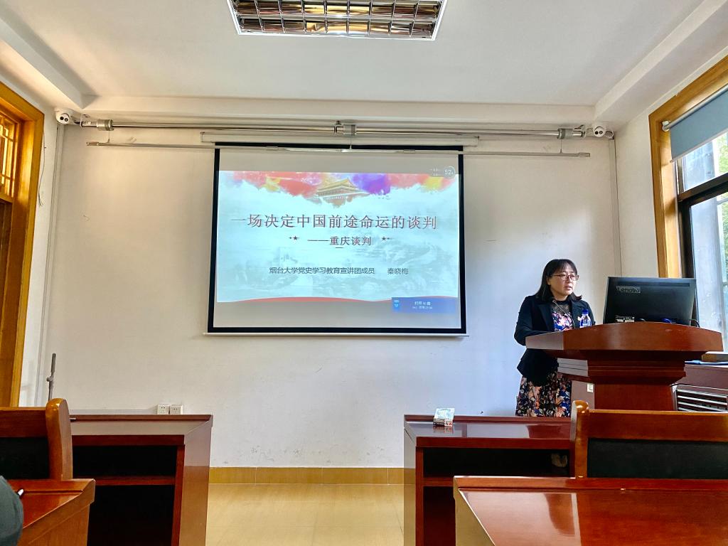 为深入推动党史学习教育走深走实,5月13日下午,经管学院邀请学校党史学习教育宣讲团成员,经管学院副处级组织员秦晓梅作题为《一场决定中国前途命运的谈判——重庆谈判》辅导报告。学院党政领导班子成员、全体教职工参加。