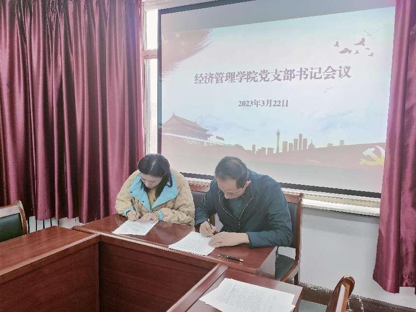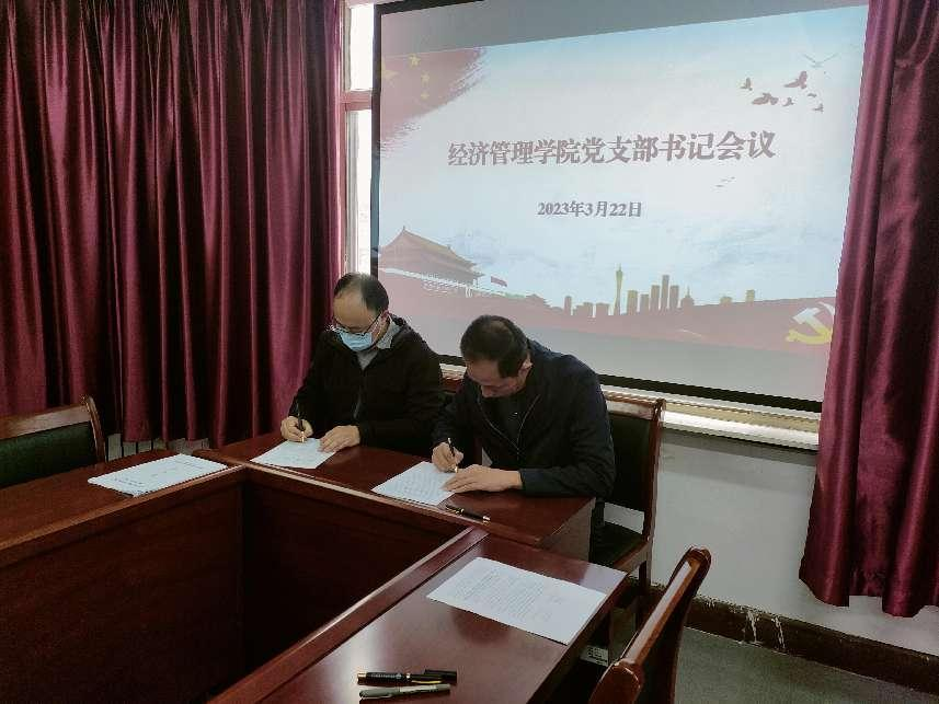 最后,张广毅与5个党支部书记签订《烟台大学经济管理学院基层党支部落实全面从严治党责任书》。