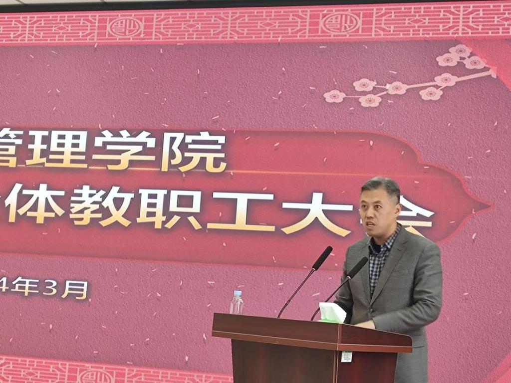 3月14日,烟台大学经济管理学院2024年度全体教职工大会在综合楼307召开。学院全体教职工参加,大会由学院党总支书记张广毅主持。