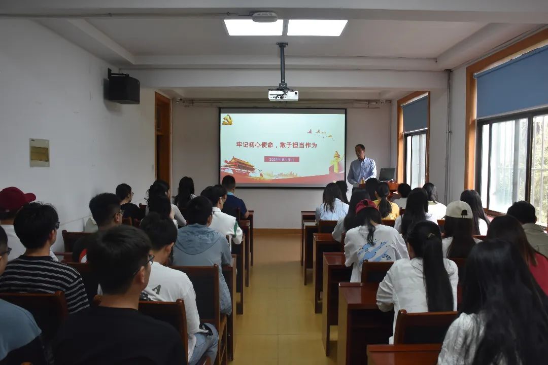 6月5日,经济管理学院党总支书记张广毅以《牢记初心使命,敢于担当作为》为题为2024届毕业生党员上了最后一堂生动的党课。对青年党员提出了希望要求,送上真挚祝福。