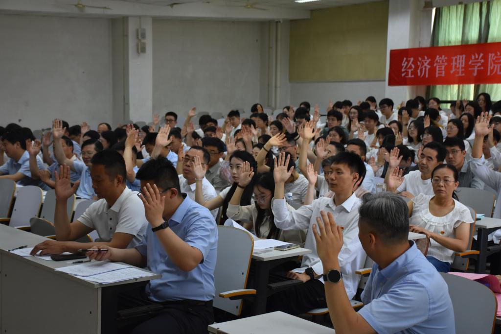 6月11日上午,经济管理学院在综合楼召开党员大会,选举出席学校第五次党员代表大会代表。会议由学院党总支书记张广毅主持,学院五个党支部的148名正式党员参加了投票选举。