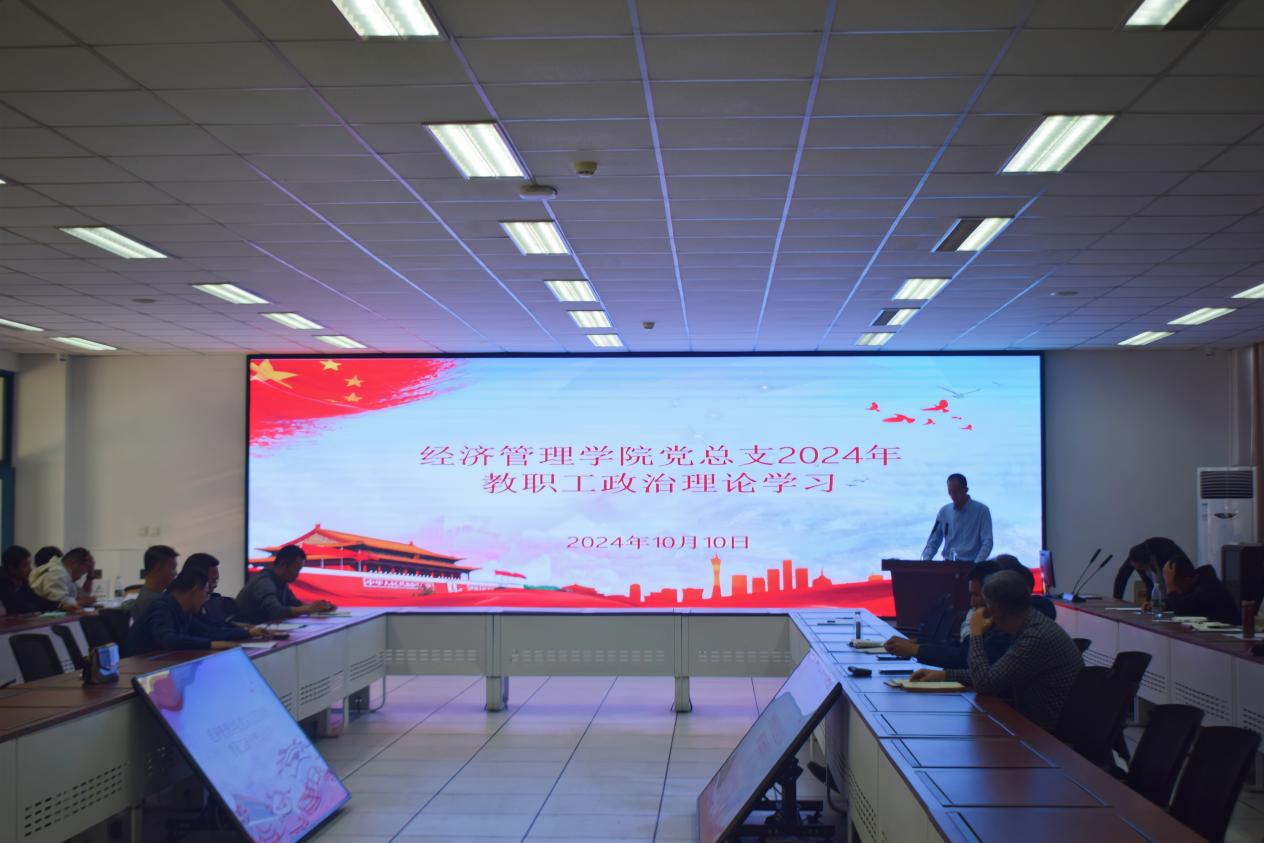 为全面准确把握党的二十届三中全会精神的丰富内涵和核心要义,在全院教职工中兴起学习贯彻全会精神的热潮,10月10日下午2:30,经济管理学院在综合楼307会议室开展了学习宣传贯彻党的二十届三中全会精神宣讲活动。学院领导班子成员、全体教职工参会。