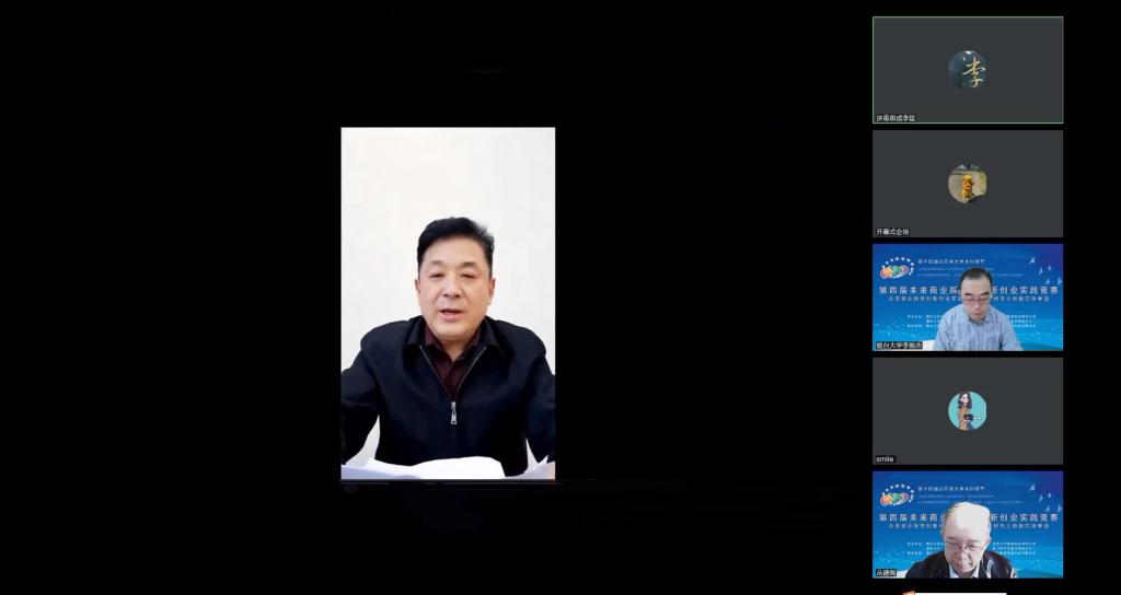 2022年11月6日,第十四届山东省大学生科技节山东省大学生“互联网+智慧金融创业管理技能竞赛” 在烟台大学举行,为配合疫情防控需要,减少人员聚集,本次大赛采用网络赛的形式,烟台大学孙祥斌副校长致欢迎词、山...