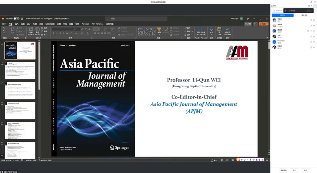 4月1日,由亚太管理学报 (《Asia Pacific Journal of Management》)主办、烟台大学经济管理学院承办的论文研讨工作坊成功举办。研讨会采用线上腾讯会议的形式,邀请了《亚太管理学报》各领域资深编辑的参与,包括...