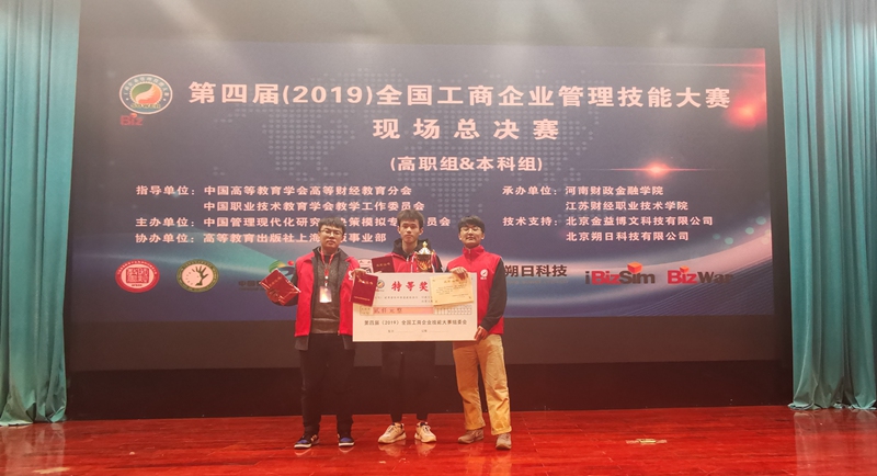 11月23日,第四届(2019)全国工商企业管理技能大赛现场总决赛在郑州成功举办,大赛由中国高等教育学会高等财经教育分会和中国管理现代化研究会决策模拟专业委员会主办,经过校赛、省赛和复赛的选拔,最终来自东北财经大学等高校42支代表队进入全国总决赛,烟台大学代表队(陈佳胜、曹阳、邱子阳,指导老师:李振杰、宋岩)经过奋力拼搏,荣获特等奖,又一次站在顶峰,一览众山小。
