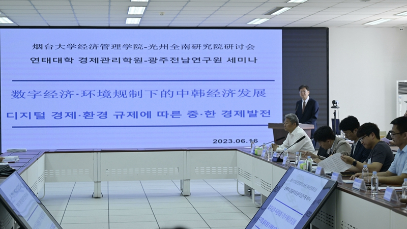 6月16日上午,烟台大学经济管理学院与韩国光州全南研究院举办《数字经济环境规制下中韩经济发展》学术研讨会,韩国光州全南研究院曹彰完院长、黃省雄、金一权、洪荣成等研究员受邀参加,烟台大学经济管理学院院长宋岩教授、副院长李振杰副教授以及学院青年博士和教师代表出席会议,全体研究生积极参与。