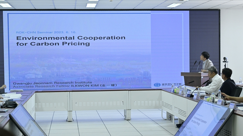 中韩双方就数字经济与环境规制主题开展了研讨,黃省雄、金一权、安孟、安润颖分别做主题报告。报告主题依次为《Digital economy in Gwangju & Jeonnam : Two current issues》、《Environmental Cooperation for Carbon Pricing》、《Study on The Influence of outward Foreign Direct Investment on Environmental Pollution Intensity in China》、《Options for China’s iron and steel industry under the carbon neutrality goal》