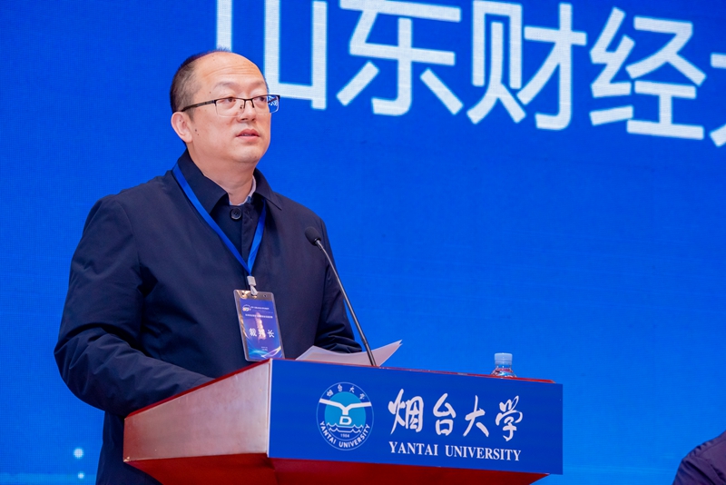 郝曙光在致辞中代表烟台大学对各位领导、专家和参赛师生的到来表示热烈欢迎,并从学科发展、师资力量、办学条件、创新创业等方面介绍了烟台大学的发展现状。近年来,烟台大学高度重视创新创业和学科竞赛工作,参加国家级学科竞赛130余项,在“挑战杯”国赛中获特等奖2项,在“互联网+”国赛中获银奖1项,在各类学科竞赛获国家级奖项700余项、省级奖项2000余项。在2018-2022年全国普通高校学科竞赛排名中位列131位,在全国地方本科院校中位列79位。期待以此次大赛为契机,助推学校培养更多、更前瞻、更尖端的新商科有用之才。
