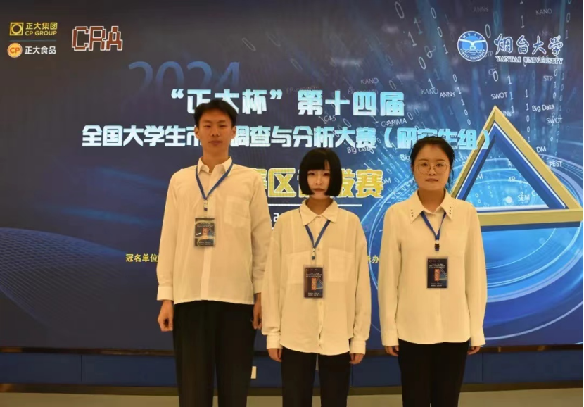 烟台大学本科生团队作品《品鸡肉之韵,享正大之名——山东市场鸡肉熟调产品的市场及消费渠道研究》(队长:王聪聪)获得一等奖,《抖韵映食光,团趣启味蕾——山东省居民抖音餐饮团购消费行为研究》(队长:张帆)获得二等奖,《“心驰神往,游乐无穷”消费者外出旅游心理动机调查研究》(队长:蔡会芹)和《“饽”大精深,助“文”远航——非遗文化赋能地方经济发展路径调研》(队长:姜晶芮)获三等奖。