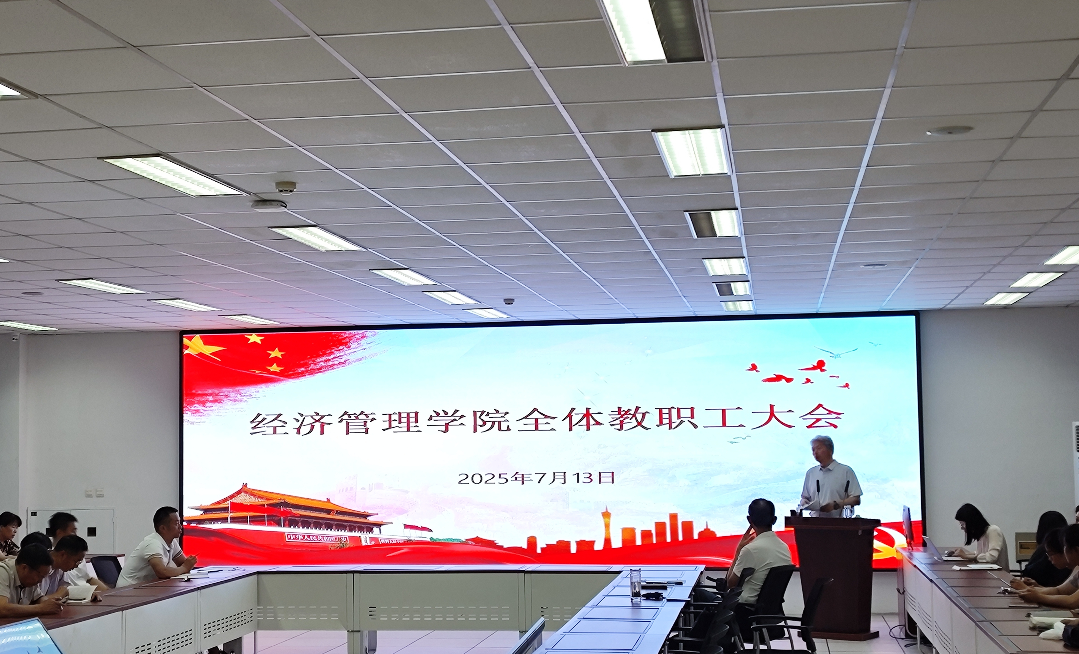 7月13日,经济管理学院在综合楼307召开期末全体教职工大会。学院党总支书记张广毅主持会议,学院领导班子及全体教职工参会。
