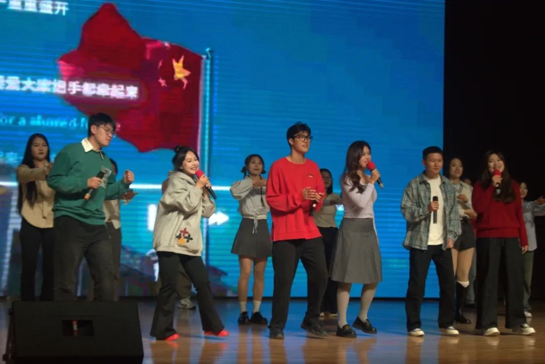 第一篇章中,歌曲联唱《声梦启航》带大家走进这场青春的旅程,熟悉的旋律响起,唤醒心中的梦想与激情。研究生带来的歌舞《一起向未来》澎湃着青春的热血,展现了风华正茂的朝气,饱含着对未来美好的期待。器乐舞蹈《敦煌伎乐天》以舞传情,以情感人,营造出神秘又震撼的氛围,让观众沉浸式深入敦煌文化之中。第二篇章中,歌曲走秀《广寒宫》以动听的曲调和自信的步伐,充分彰显东方风韵,用华服之美传承千年文化。折射拖延现象的话剧《消失的周日》笑点十足,引发同学们对拖延现象的深刻反思。新生导助带来的舞蹈《阳光男孩阳光女孩》动感十足、活力无限,记忆瞬间拉回到初入大学军训时的“迷彩”时光。第三篇章中,师生朗诵《四秩礼赞》以饱含深情、铿锵有力的言语,赞颂了91成人网