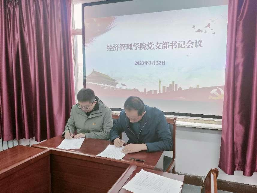 最后,张广毅与5个党支部书记签订《烟台大学经济管理学院基层党支部落实全面从严治党责任书》。