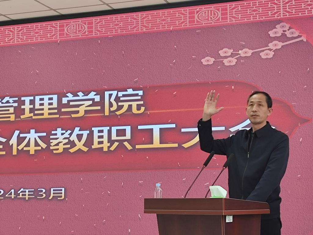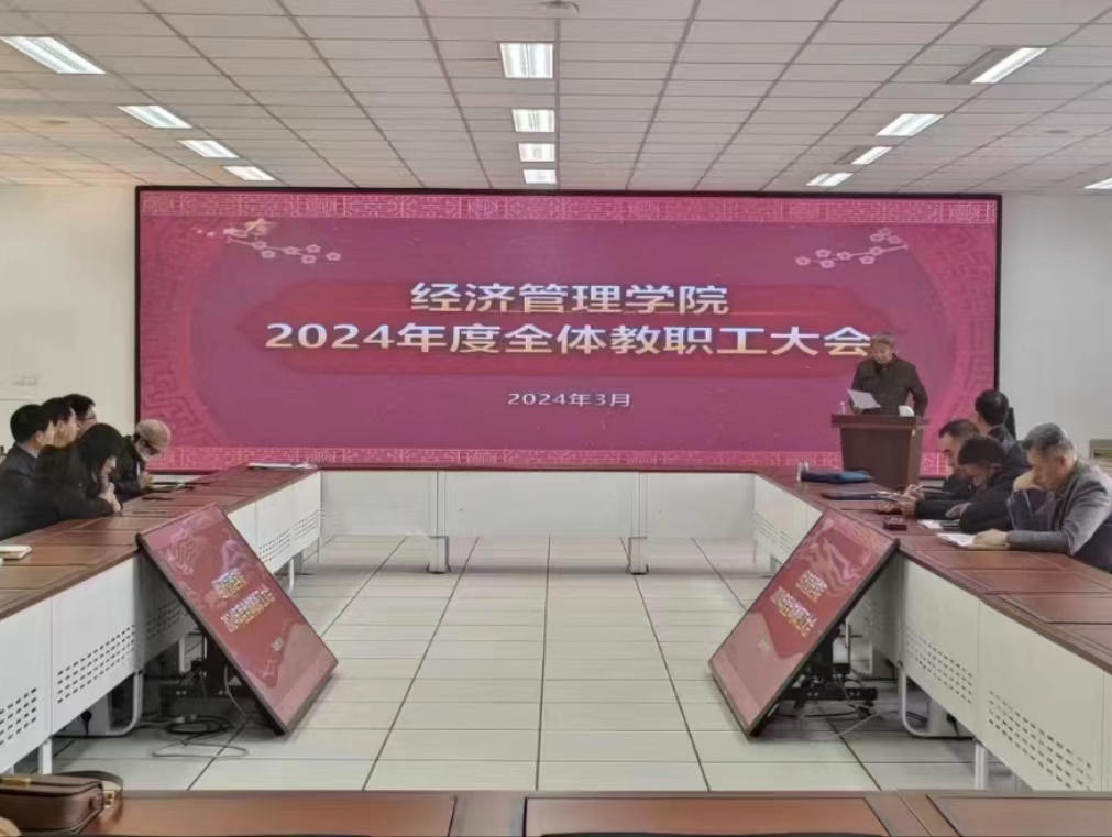 3月14日,烟台大学经济管理学院2024年度全体教职工大会在综合楼307召开。学院全体教职工参加,大会由学院党总支书记张广毅主持。