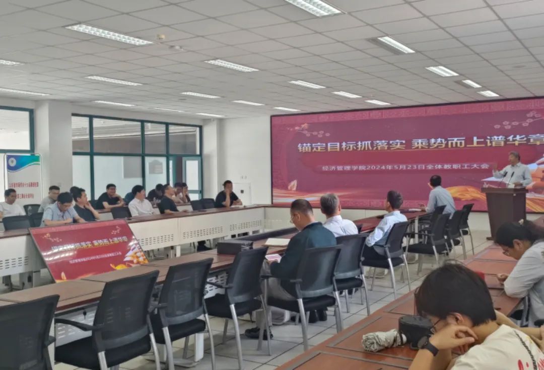 5月23日下午,经济管理学院在综合楼307举办全院大会,会议由院党总支书记张广毅主持,全体教职工参加。