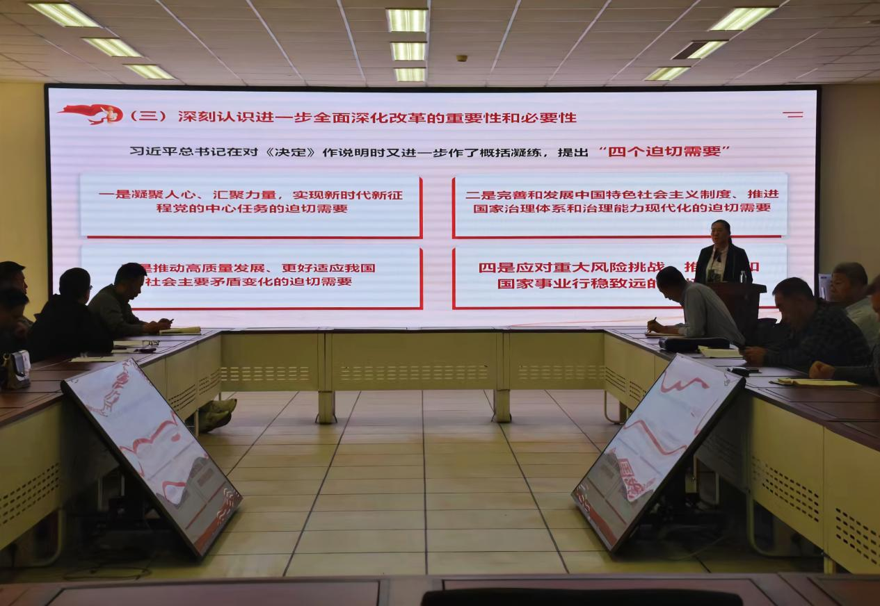 为全面准确把握党的二十届三中全会精神的丰富内涵和核心要义,在全院教职工中兴起学习贯彻全会精神的热潮,10月10日下午2:30,经济管理学院在综合楼307会议室开展了学习宣传贯彻党的二十届三中全会精神宣讲活动。学院领导班子成员、全体教职工参会。